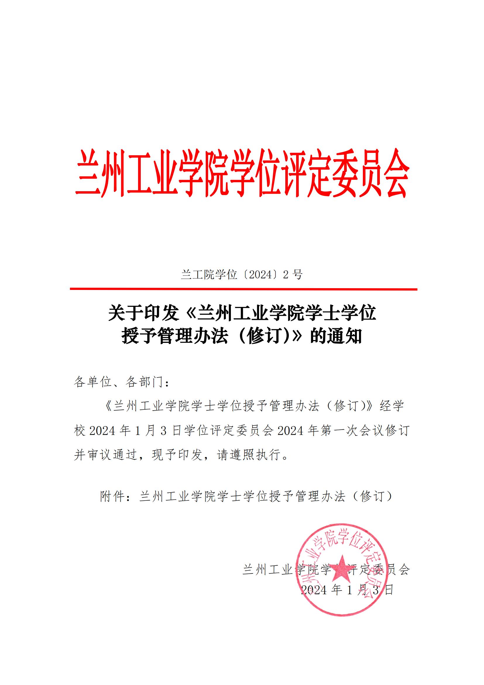 关于印发《兰州工业学院学士学位授予管理办法(修订)》的通知