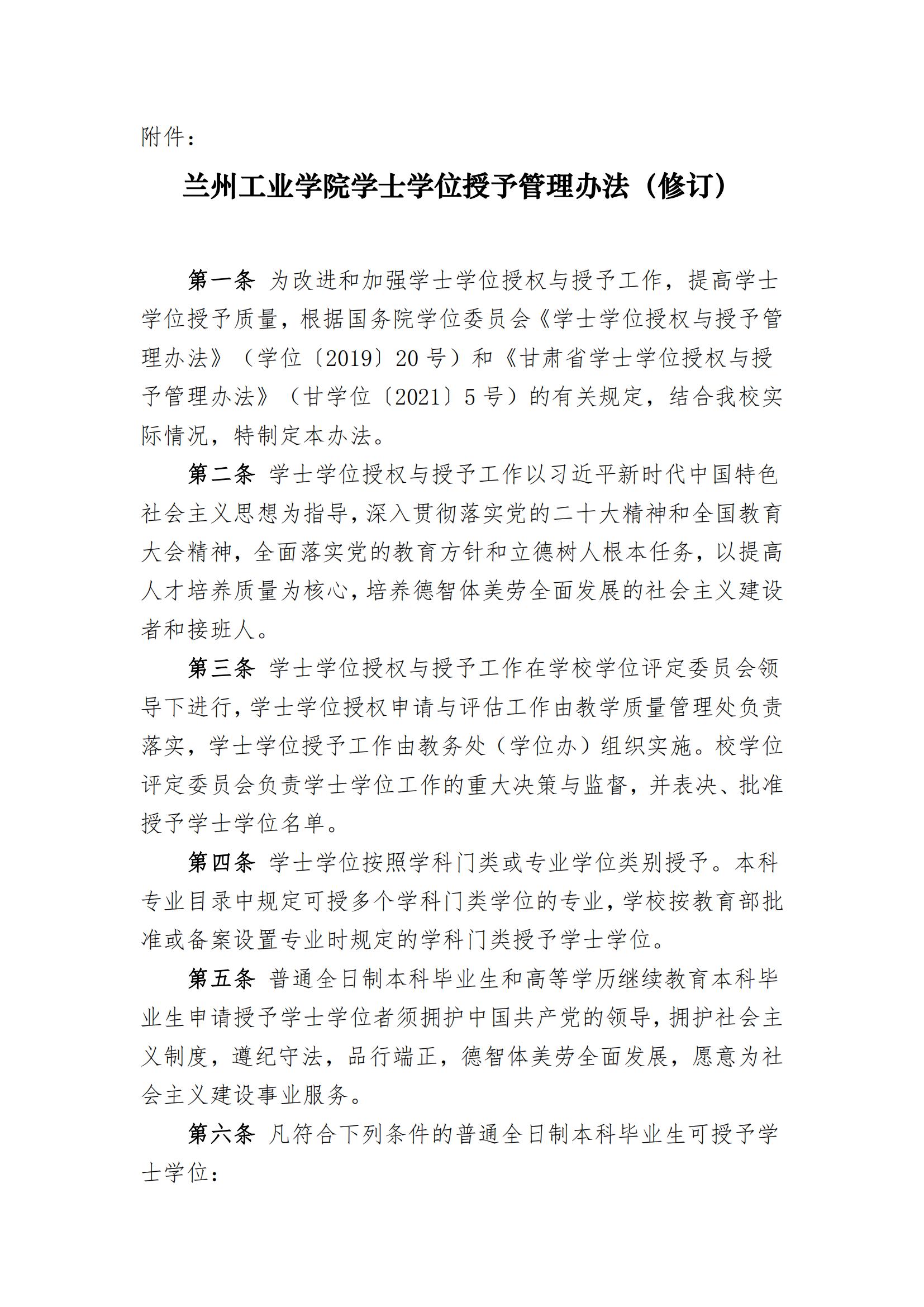 为改进和加强学士学位授权与授予工作,提高学士学位授予质量,根据国务院学位委员会《学士学位授权与授予管理办法》(学位〔2019〕20 号)和《甘肃省学士学位授权与授予管理办法》(甘学位〔2021〕5 号)的有关规定,结合我校实际情况,特制定本办法。