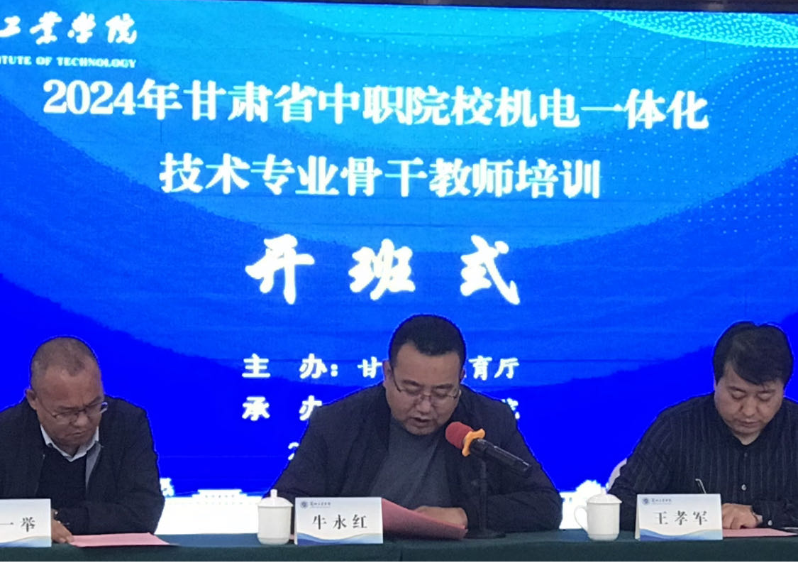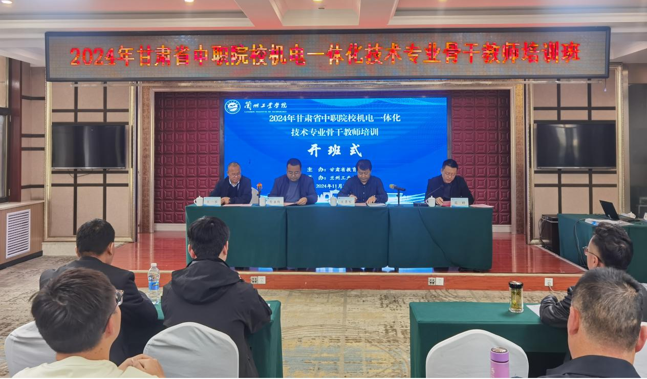 为进一步加强中职院校内涵建设,着力培养专业骨干教师,提升中职教育办学质量,打造一支品德高尚、技能精湛的教师队伍。由甘肃省教育厅主办、兰州工业学院承办的“2024年甘肃省中职院校机电一体化技术专业骨干教师培训”于11月10日上午在兰顺利开班。甘肃教育培训中心主任王孝军、兰州工业学院继续教育学院院长牛永红、副院长王一举出席开班仪式并讲话。来自全省中职院校机电一体化技术专业骨干教师40人及兰州工业学院相关工作人员参加了开班仪式,开班仪式由副院长岳峰主持。