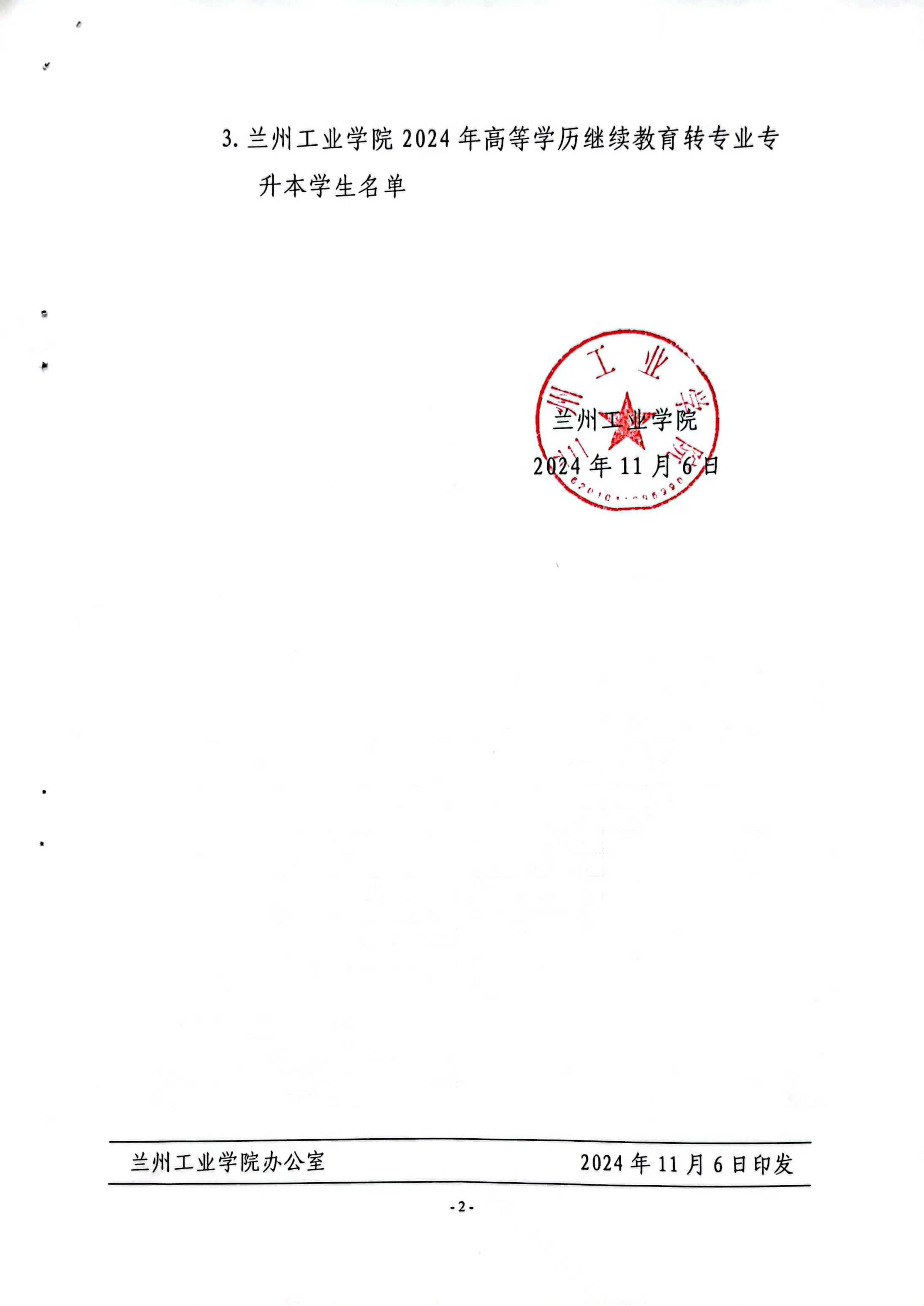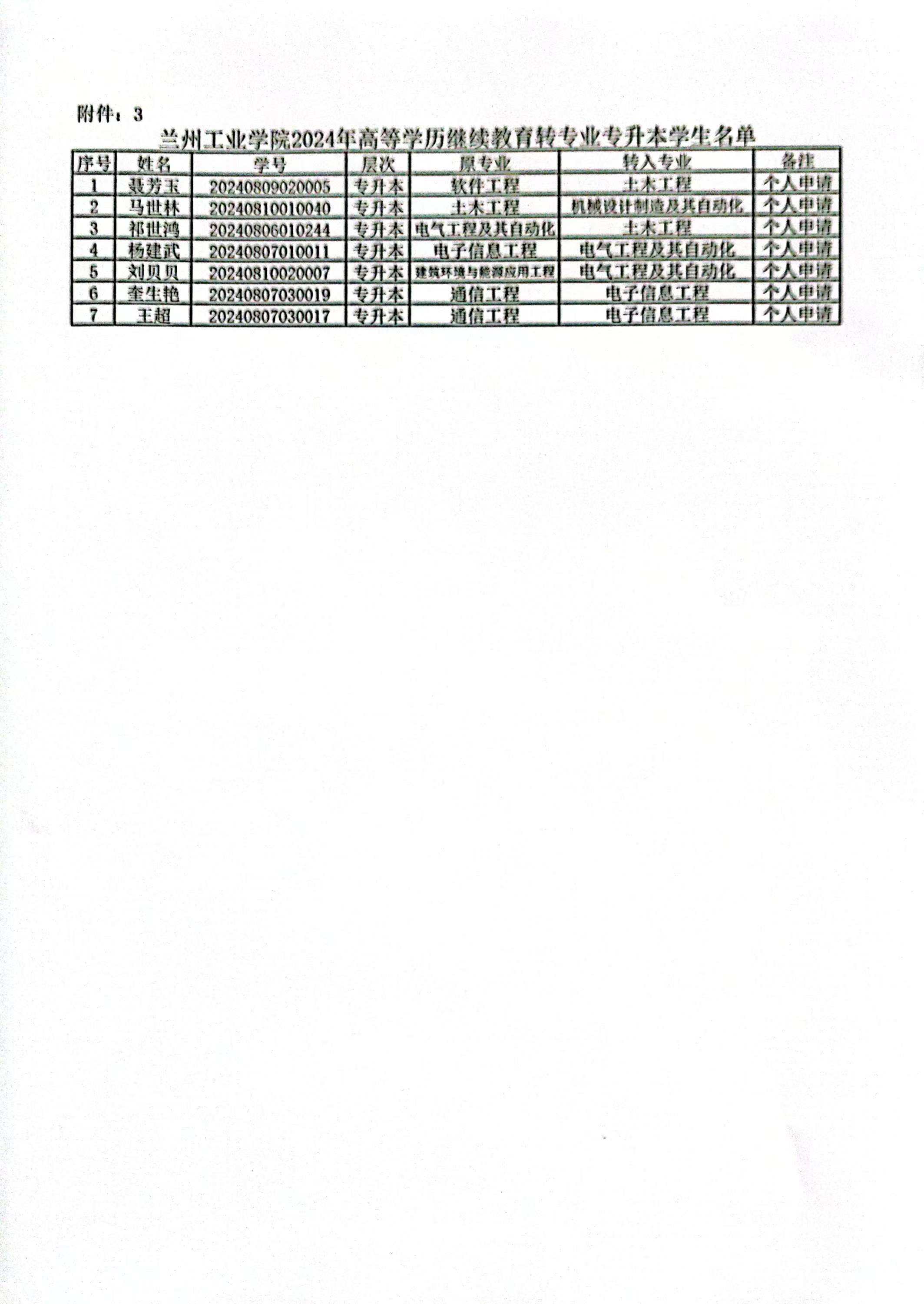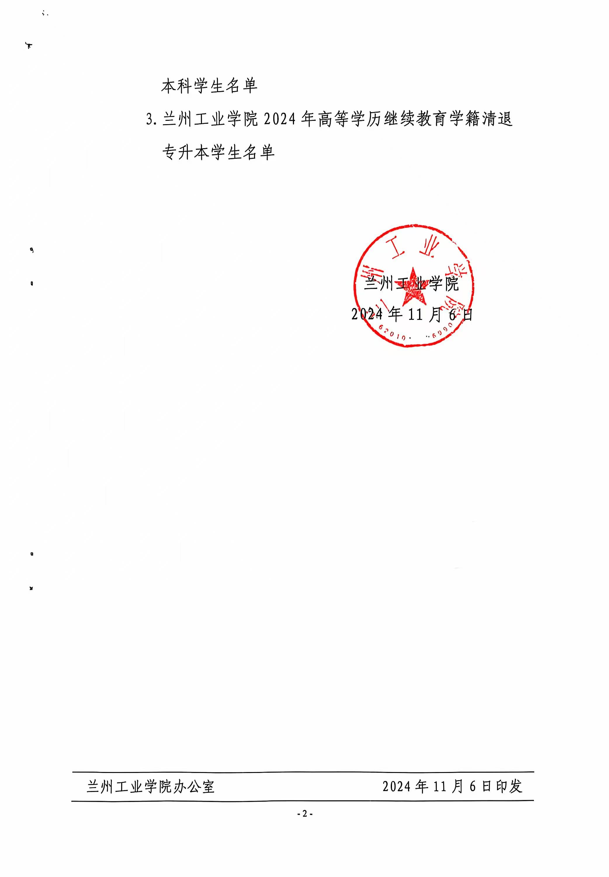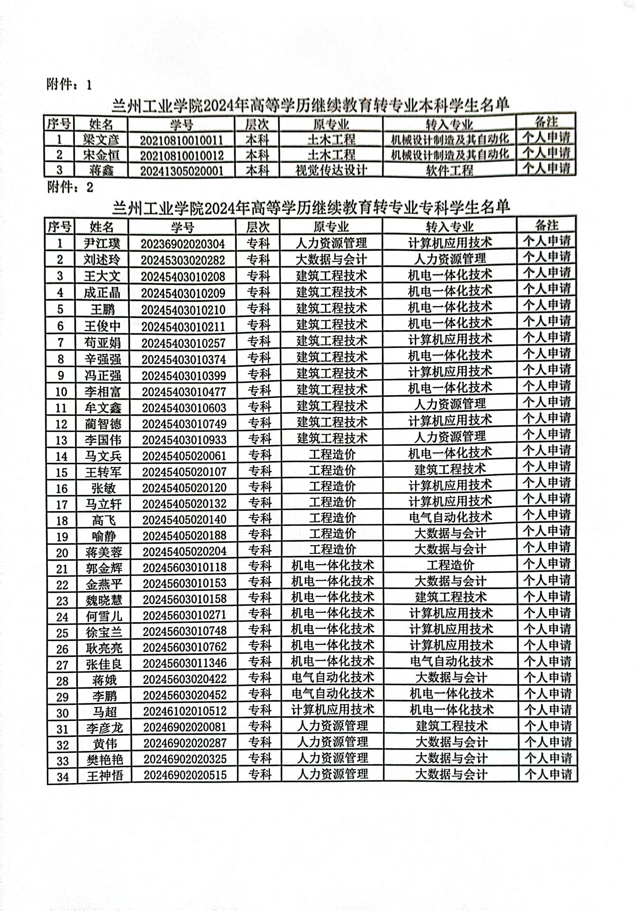 经学校2024年第23次校长办公会议研究决定,同意给予杨行妹等33名高等继续教育学生退学处理及梁文彦等44名学生转专业。按照管理规定现将杨行妹等33名高等继续教育学生给予退学处理及梁文彦等44名学生转专业的决定给予公告,详见附件。